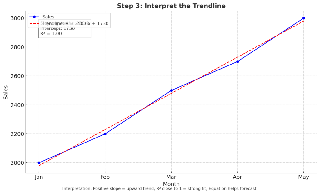 - The R² value shows how well the trendline fits the data (closer to 1 = better fit).
