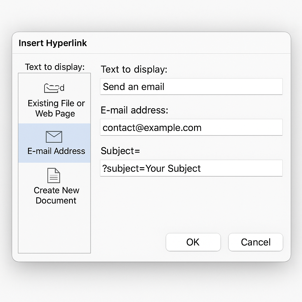 Email hyperlinks make it easy. With one click, they open pre-filled emails. This is great for support tickets or contact forms. Link “Request Access” to an IT support email with subject line included.