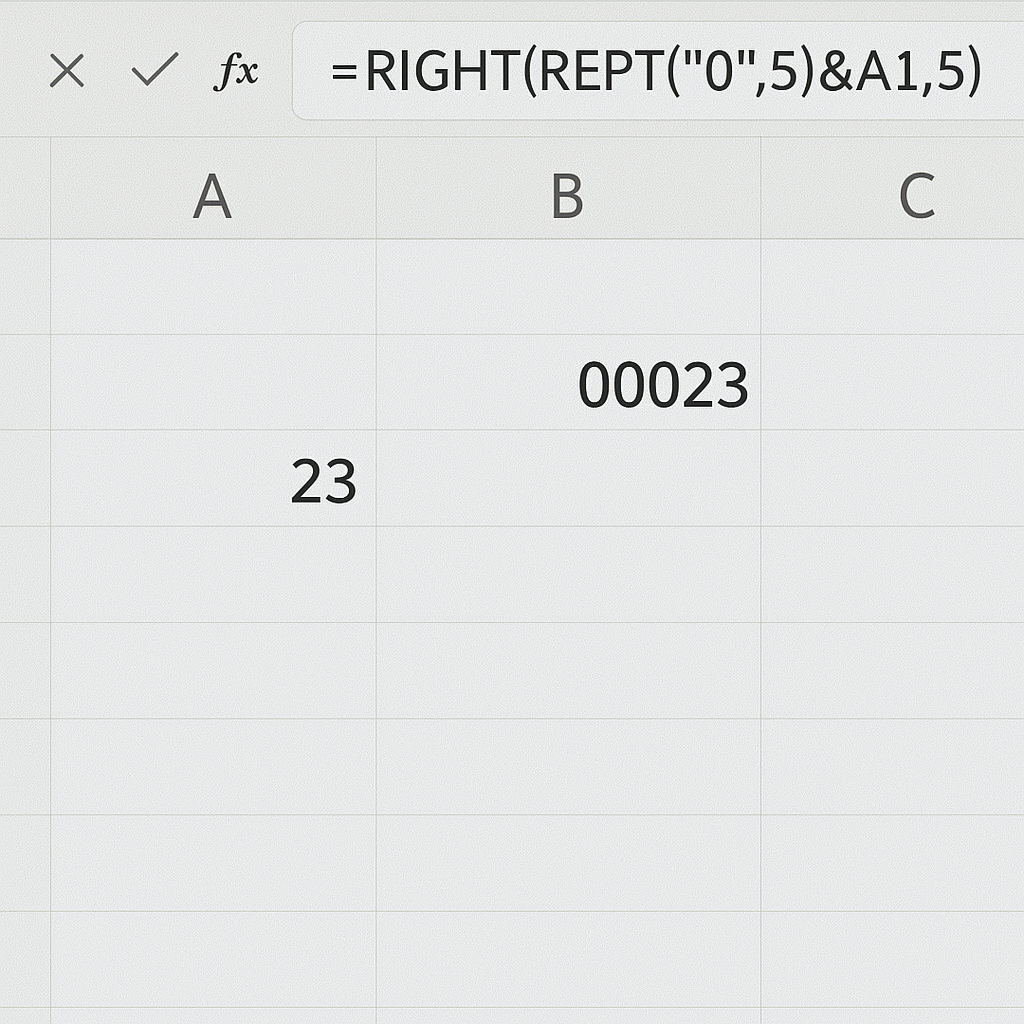 5432 | =TEXT(A2, “00000”) | 05432 |