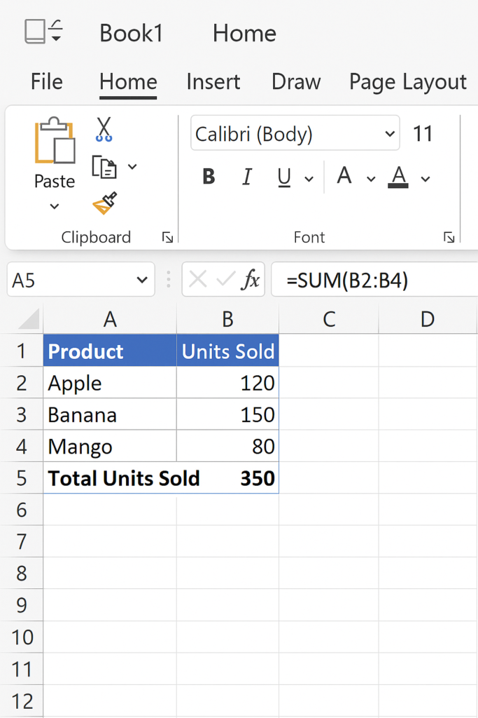 Instead of calculating totals by hand, Excel does it in milliseconds using the SUM function. Whether you’re working with 10 rows or 10,000, the total is just a formula away.