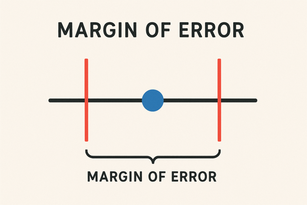 Example: In product feedback surveys, users might prefer one prototype over another by 3%. But if the MOE is ±4%, the difference is statistically insignificant.