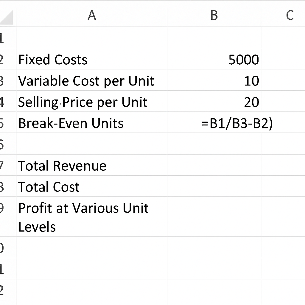 • Break-Even Point (BEP): The number of units (or revenue amount) needed to cover all expenses.