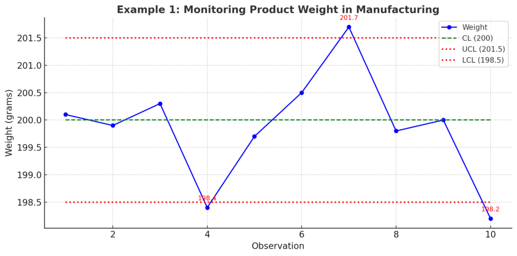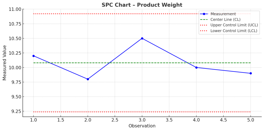 - Add a chart title (e.g., “SPC Chart – Product Weight”)