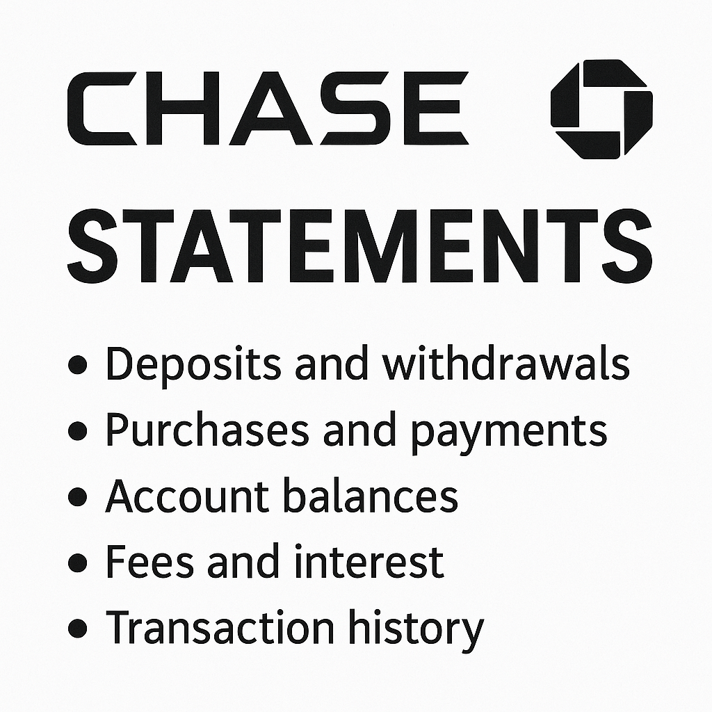 Chase Bank statements show your banking activity every month or quarter. They are provided by JPMorgan Chase. These statements outline: