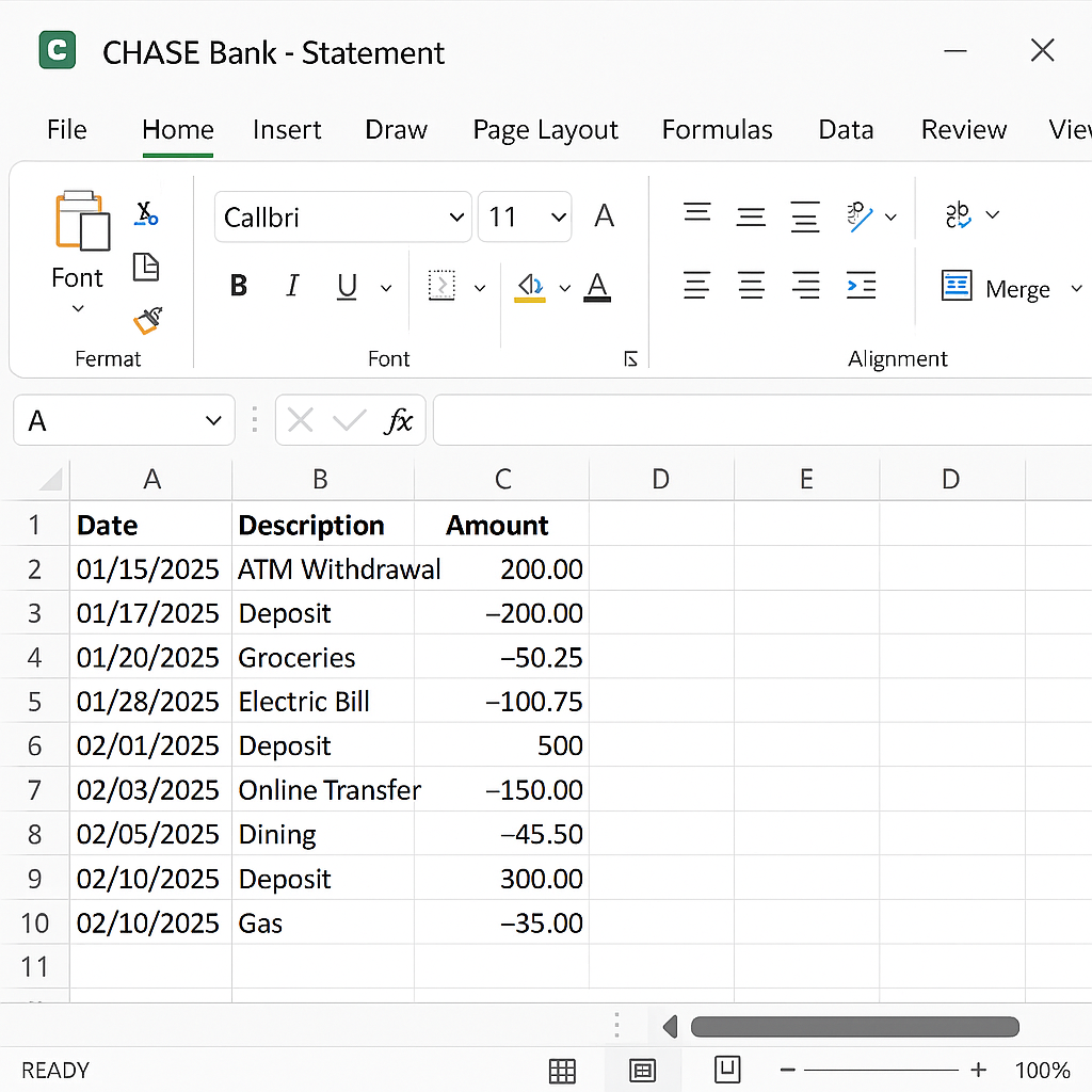 Excel allows you to organize, analyze, and customize your financial data in ways that are not possible with Chase’s online portal or static PDFs.