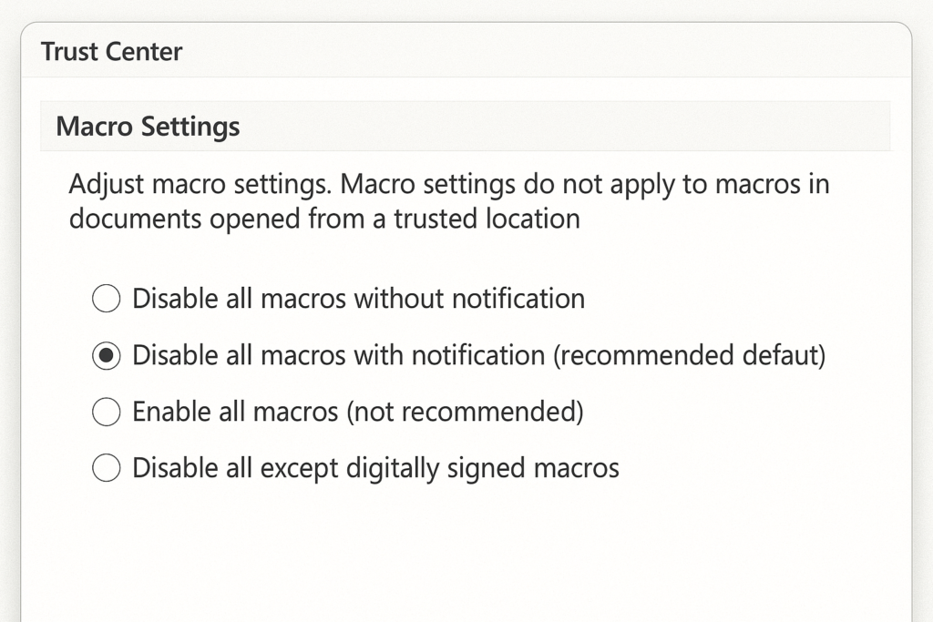 - Disable all macros with notification (recommended default)