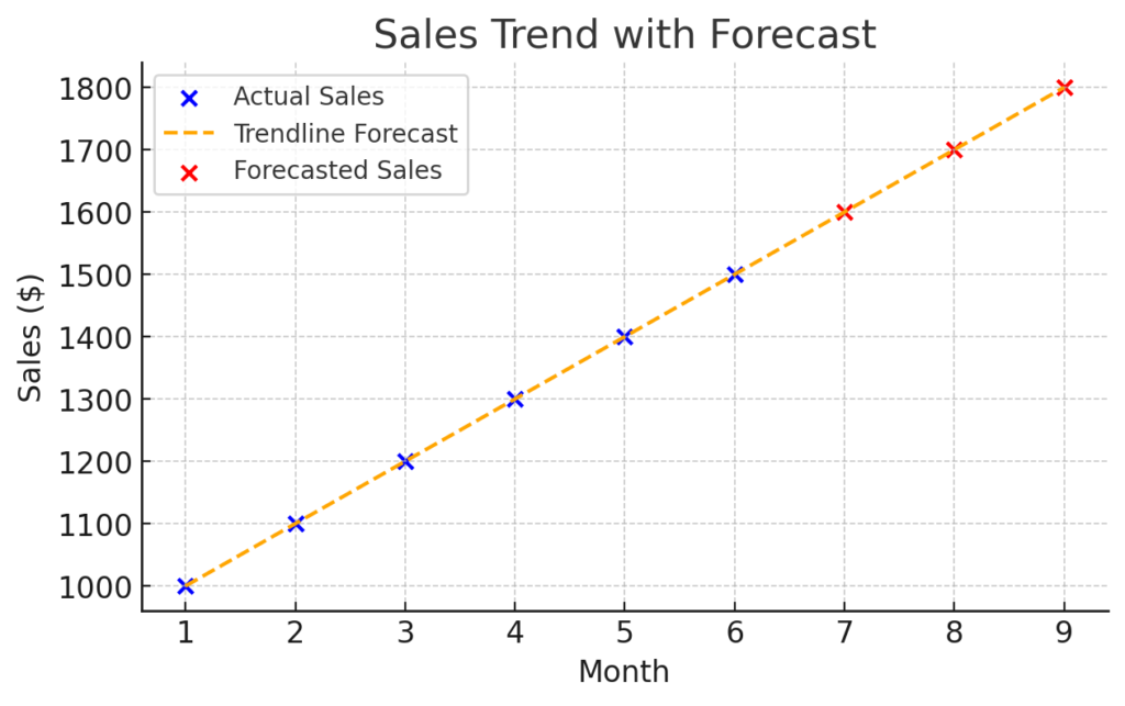 Excel’s extrapolation helps you quickly predict future numbers, such as sales, costs, or user growth. This empowers teams to set budgets, sales targets, or plan operations effectively.