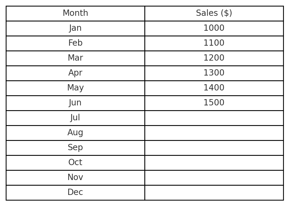 - Enter Known Values Example: A1:A6 → Jan to June sales (1000, 1100, 1200…).