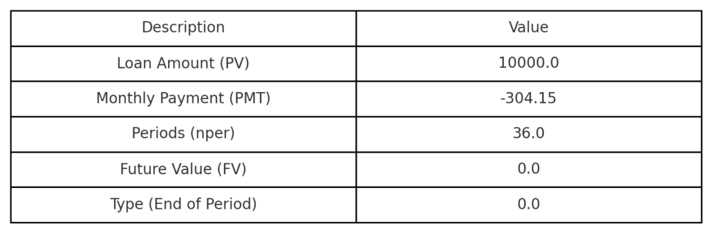 - Loan Amount (PV): 10,000