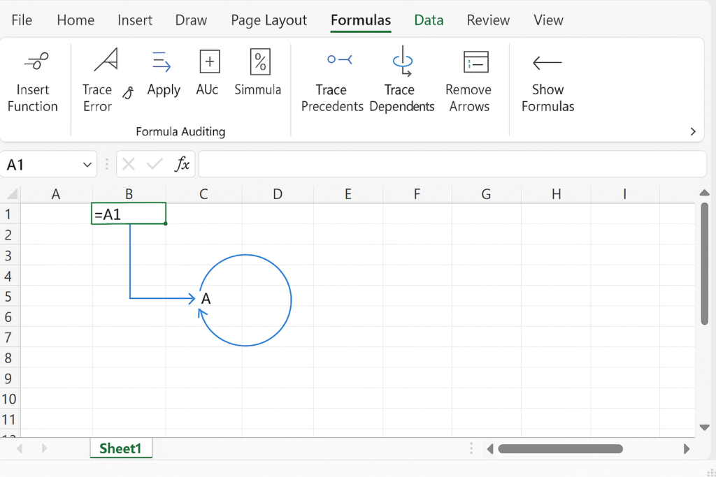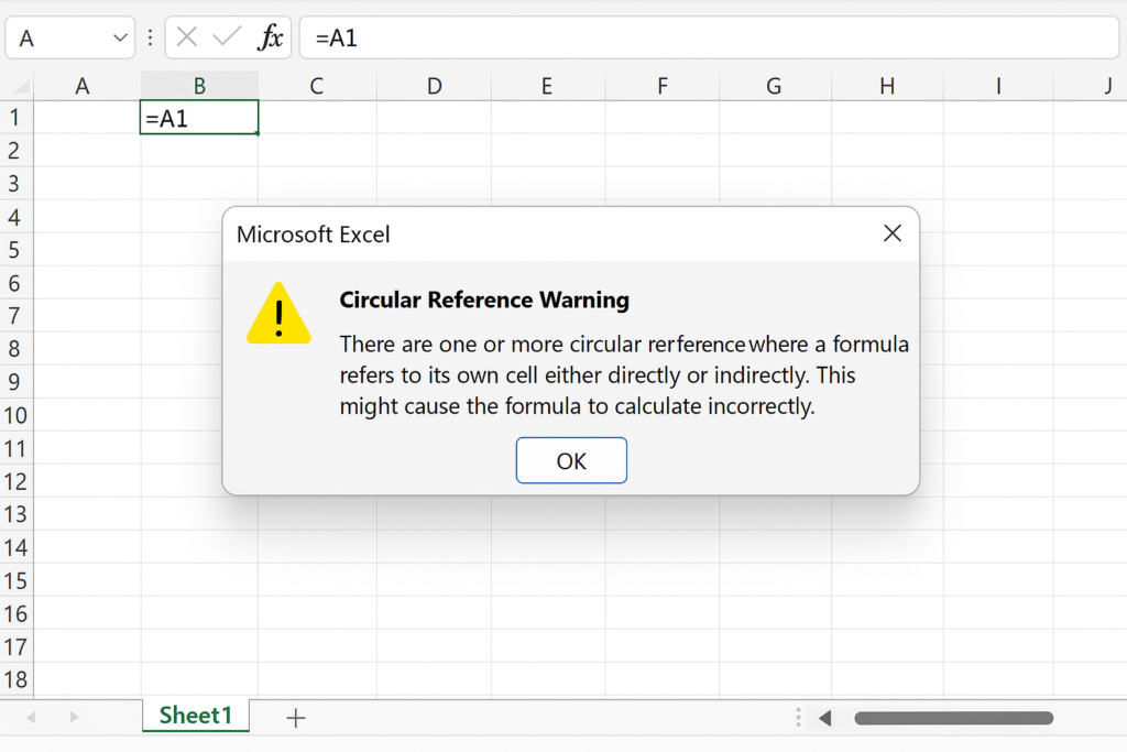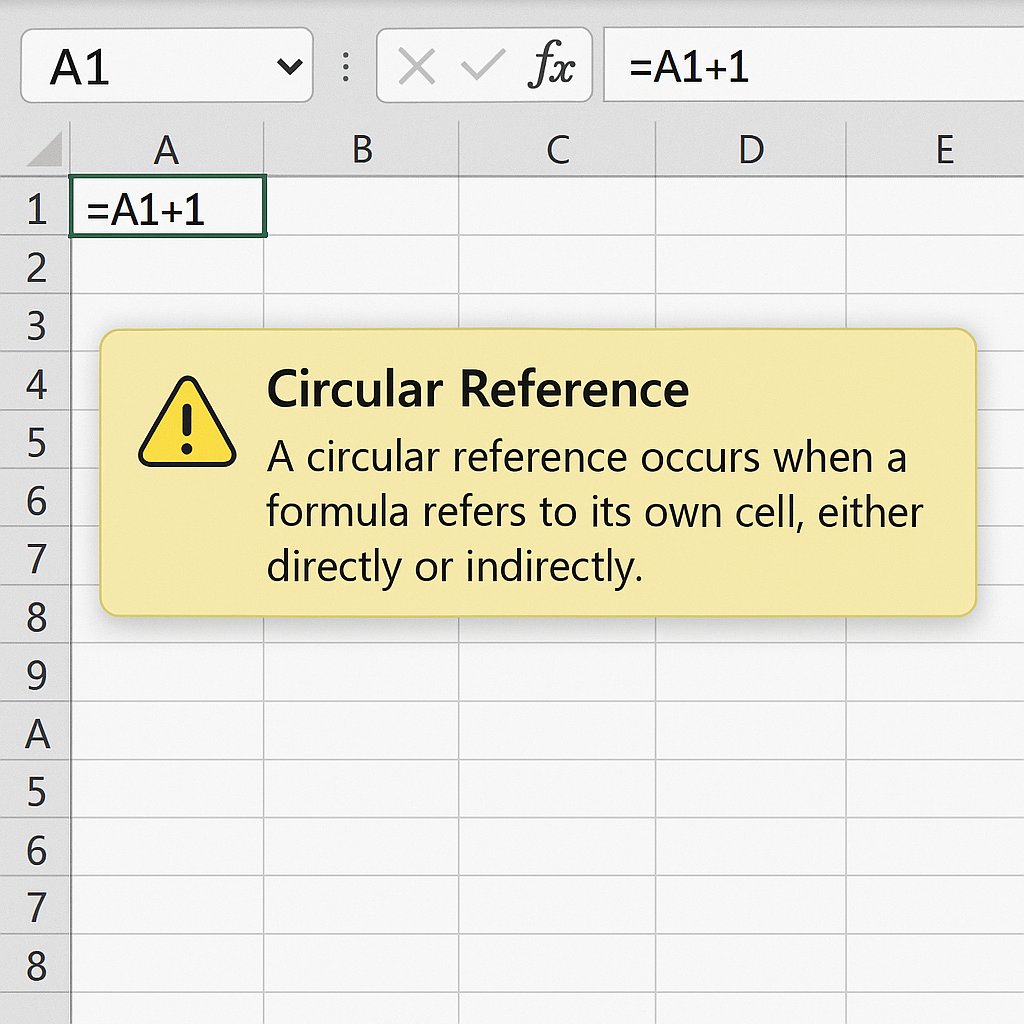 A circular reference happens when a formula points back to its own cell, either directly or indirectly. In simple terms, Excel gets caught in a loop, trying to calculate a value that depends on itself.