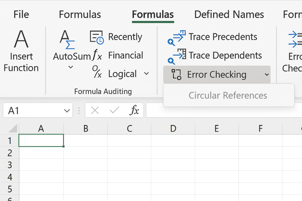 Circular references are formulas that loop back to themselves, either directly or indirectly. Excel can flag them, but in large spreadsheets, they can be tricky to locate. Use the following steps to find and fix them efficiently: