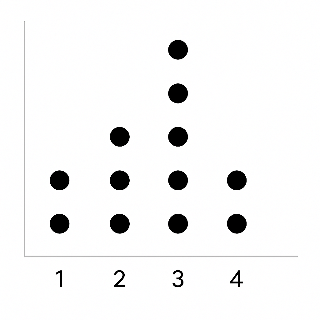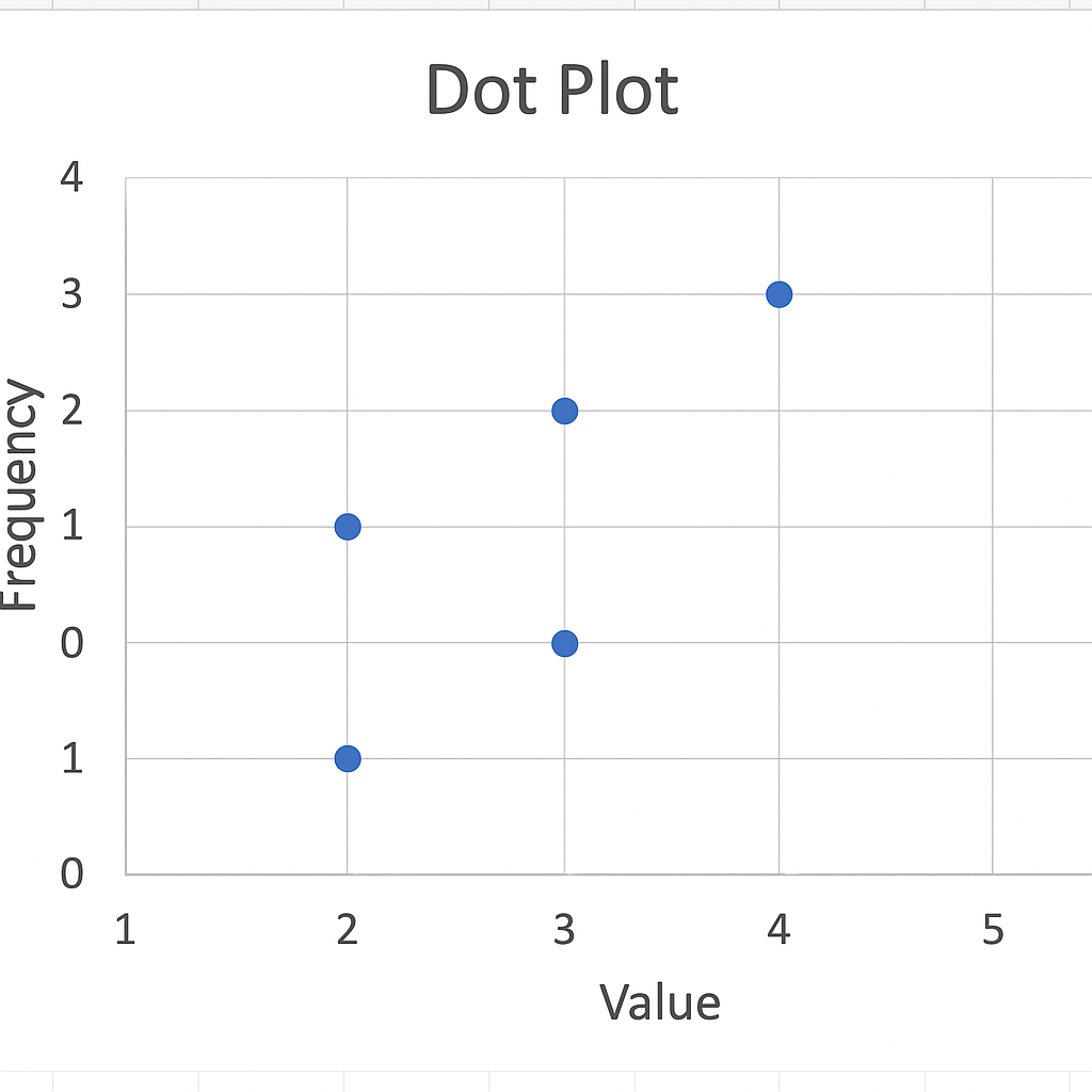 A dot plot is a simple chart. It shows individual data points along an axis. People often use it to display frequency or distribution. Each dot represents one or more occurrences of a value.