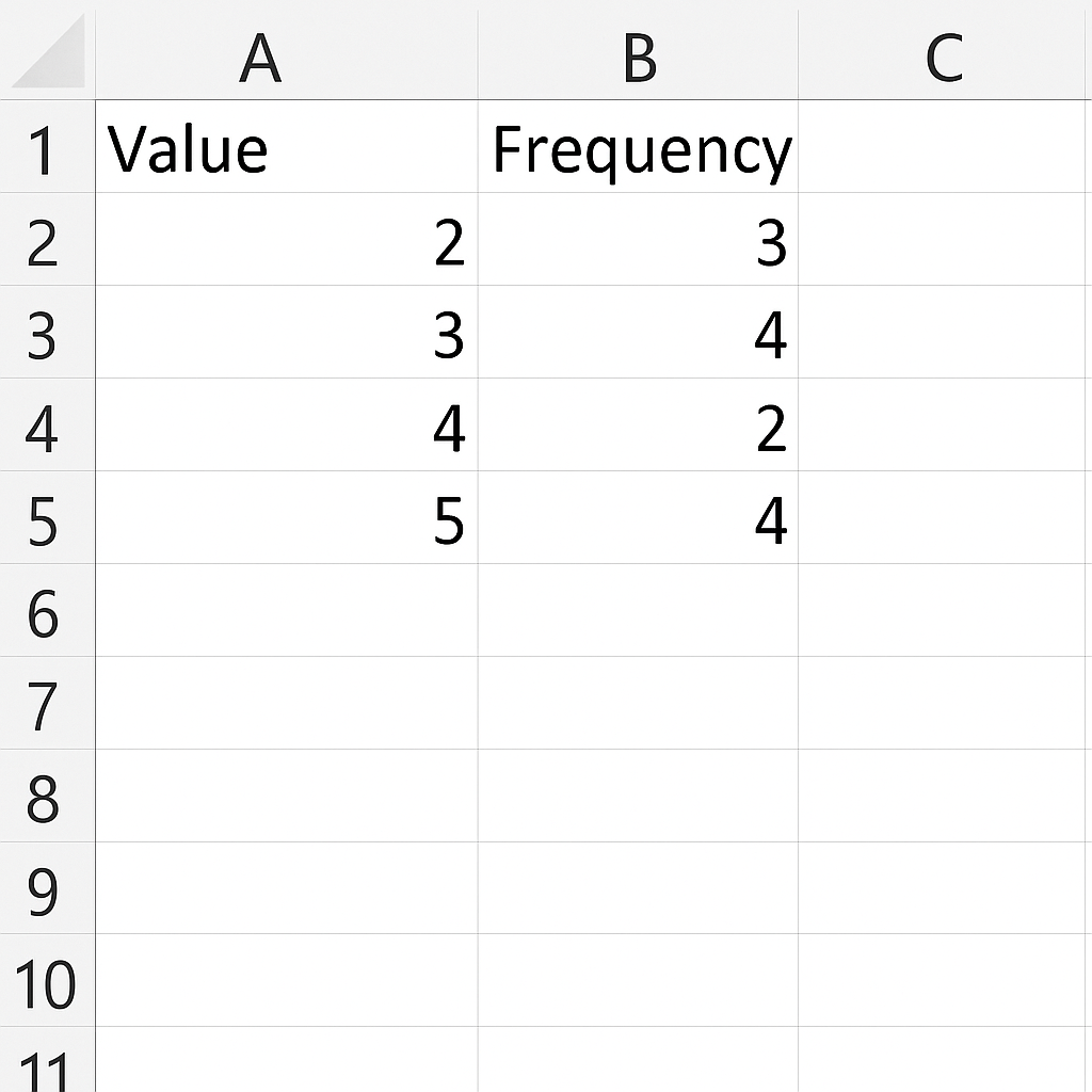 Imagine you surveyed 10 students about how many hours they studied per week. Here’s the frequency: