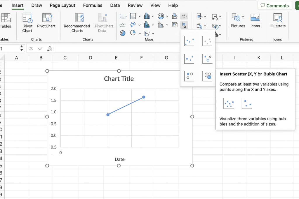 - Click on Insert Scatter (X, Y) or Bar Chart.