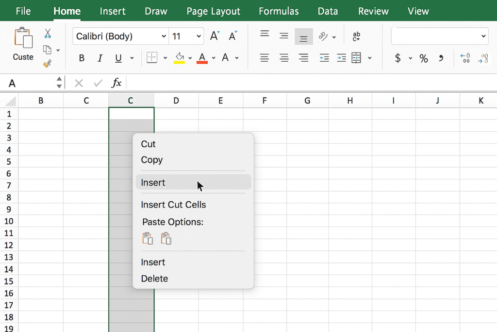 - Right-click on the column where you want to insert it > select Insert Cut Cells.