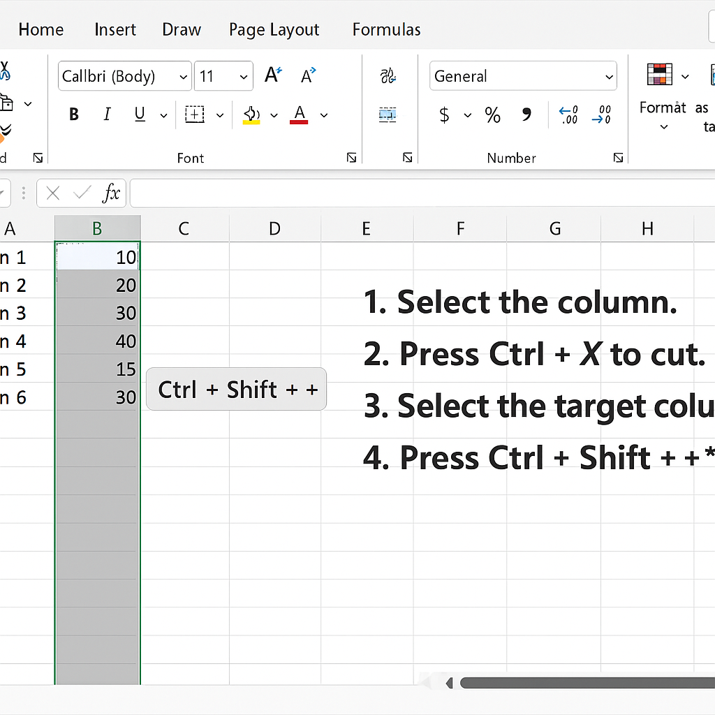 - Press Ctrl + Shift + “+” to insert the cut column to the left of the selected one.