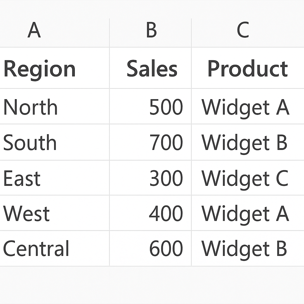 | A (Region) | B (Product) | C (Sales) | → You want to move “Sales” (Column C) to be next to “Region”.