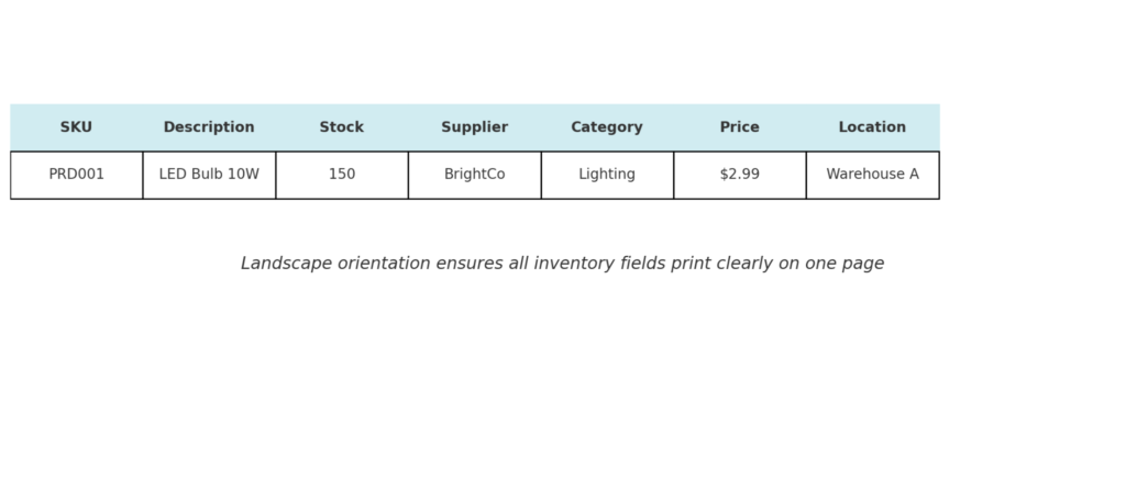 Portrait PDFs often cut off columns or require multiple pages. Landscape format shows wide datasets on one page. This cuts down confusion and improves layout.