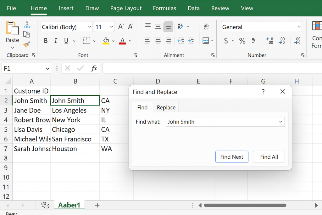 Example: Instead of scrolling through 10,000 rows to find a specific order ID, use Ctrl + F and jump directly to it.